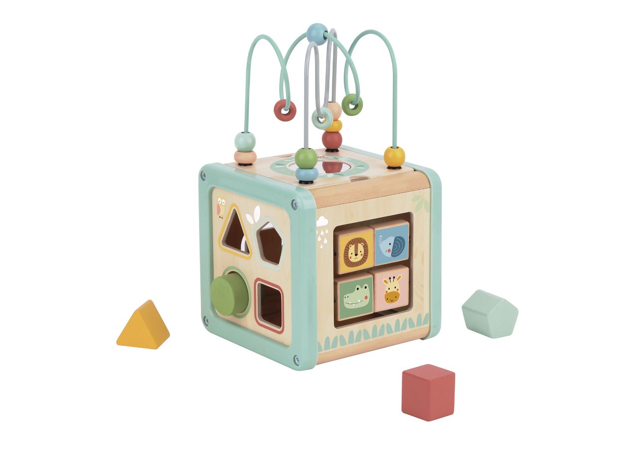 Un adevărat centru de joacă educativă într-un design pastel superb! Acest cub multifuncțional le oferă celor mici 6 activități educative esențiale pentru dezvoltarea cognitivă și motrică.