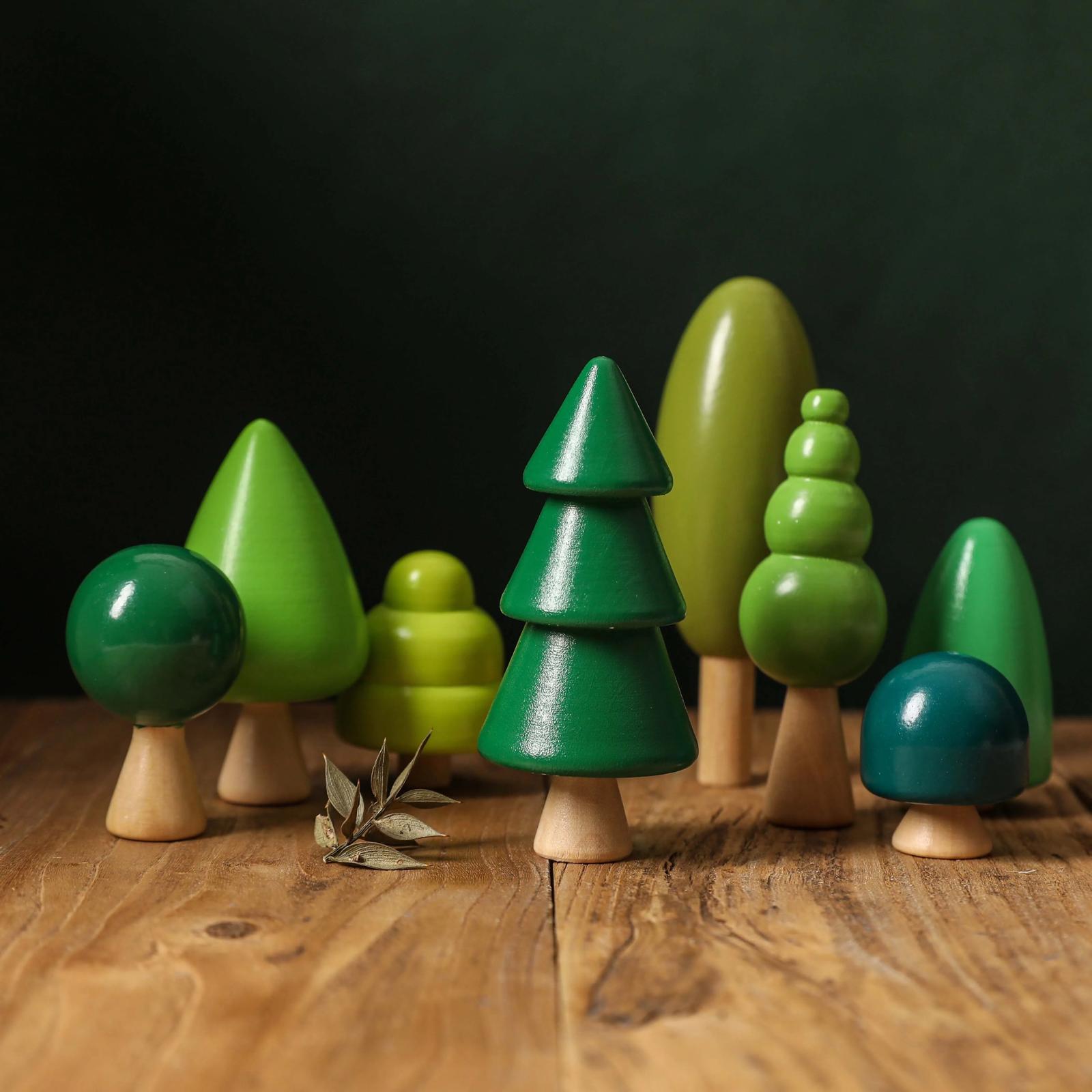 Set 8 Copaci Montessori din Lemn – Jucărie Educativă Waldorf pentru Joc Imaginativ