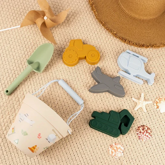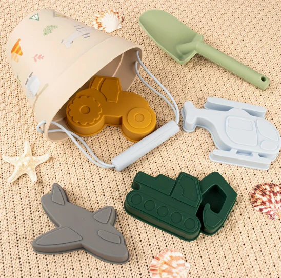 Set Găletușă din Silicon Utilaje si Avioane + Forme & Lopățică – Joacă Creativă la Plajă și în Nisip