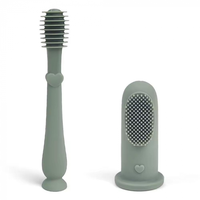 Un set indispensabil pentru primele luni de îngrijire orală a bebelușului, conceput cu grijă pentru siguranță, confort și educație timpurie. Include o periuță de deget și o periuță clasică cu mâner ergonomic, ambele realizate din silicon alimentar 100%, ultra-moale și non-toxic.