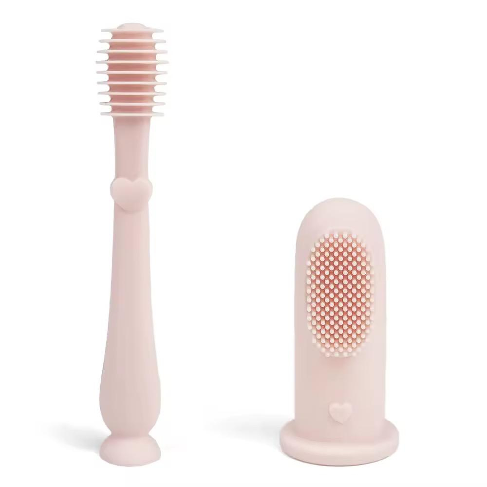 Un set indispensabil pentru primele luni de îngrijire orală a bebelușului, conceput cu grijă pentru siguranță, confort și educație timpurie. Include o periuță de deget și o periuță clasică cu mâner ergonomic, ambele realizate din silicon alimentar 100%, ultra-moale și non-toxic.