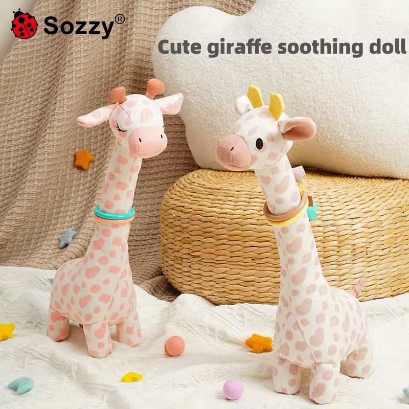 Descoperă una dintre cele mai iubite jucării senzoriale pentru bebeluși – girafa din pluș cu detalii pastel și funcții multiple, concepută special pentru a stimula dezvoltarea armonioasă a micuților.