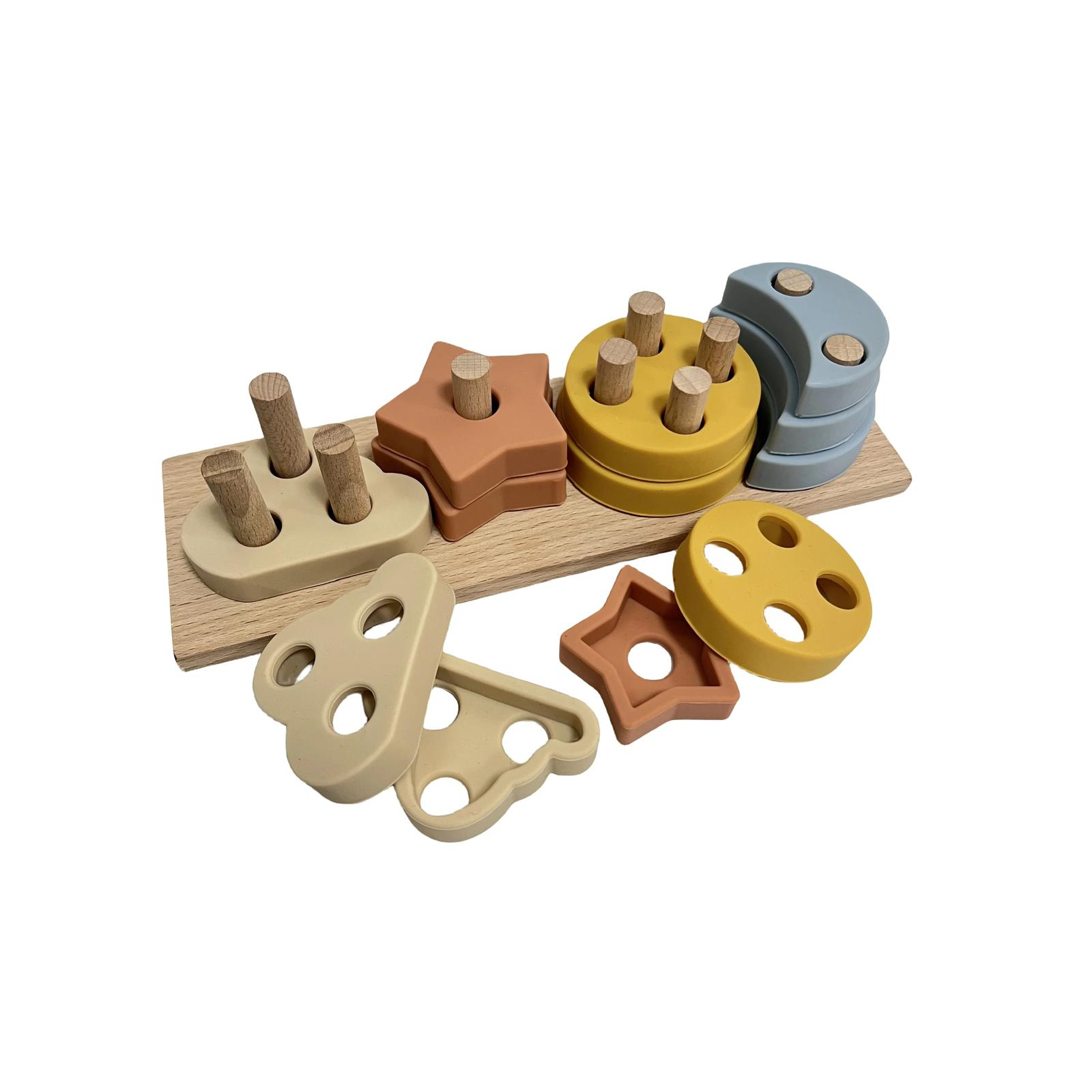 Combinație de lemn natural netratat (bază și bețe) cu piese din silicon alimentar, ușor de apucat și plăcut la atingere – fără BPA, PVC sau alte substanțe toxice.