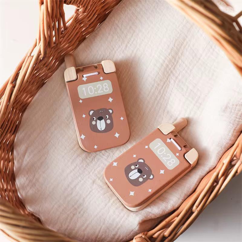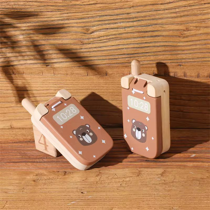 Telefon din lemn cu clapetă – Jucărie educativă și de rol pentru copii